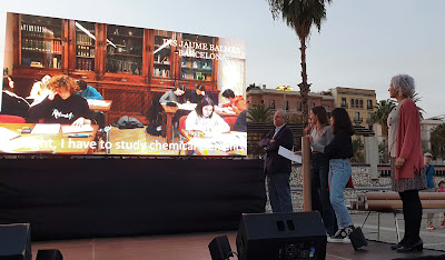 L’alumnat de Química I de 1r de Batxillerat del curs 2018-2019 ha estat proclamant guanyador en la categoria 17-18 anys amb el vídeo anomenat “Mnemonic Revolution”. Les alumnes Núria Gil i Emma Falcó van recollir el premi en representació dels seus companys.