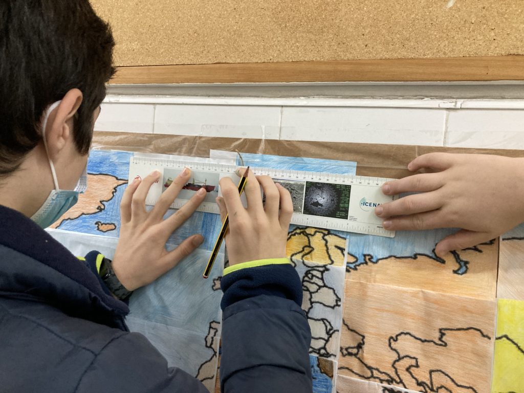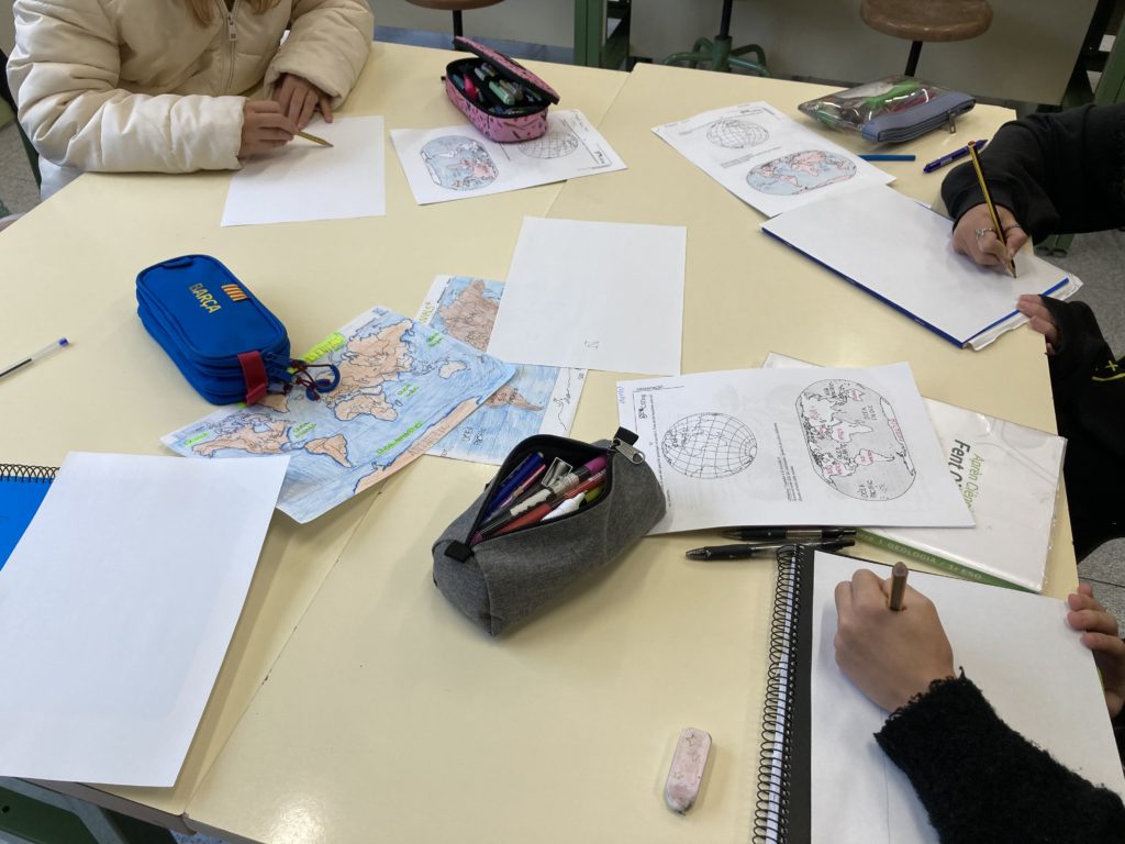 El mapa ens ha permès treballar conceptes com paral·lels, meridians, longitud i latitud, i continguts de geocalització que els regatistes fan servir per navegar. El nostre alumnat ha interpretat aquests continguts en un context real. Va buscar la ubicació amb eines digitals de casa seva o la del centre educatiu. També van entendre quan a la pel·lícula En solitario es donava la posició del IMOCA, que havia naufragat.