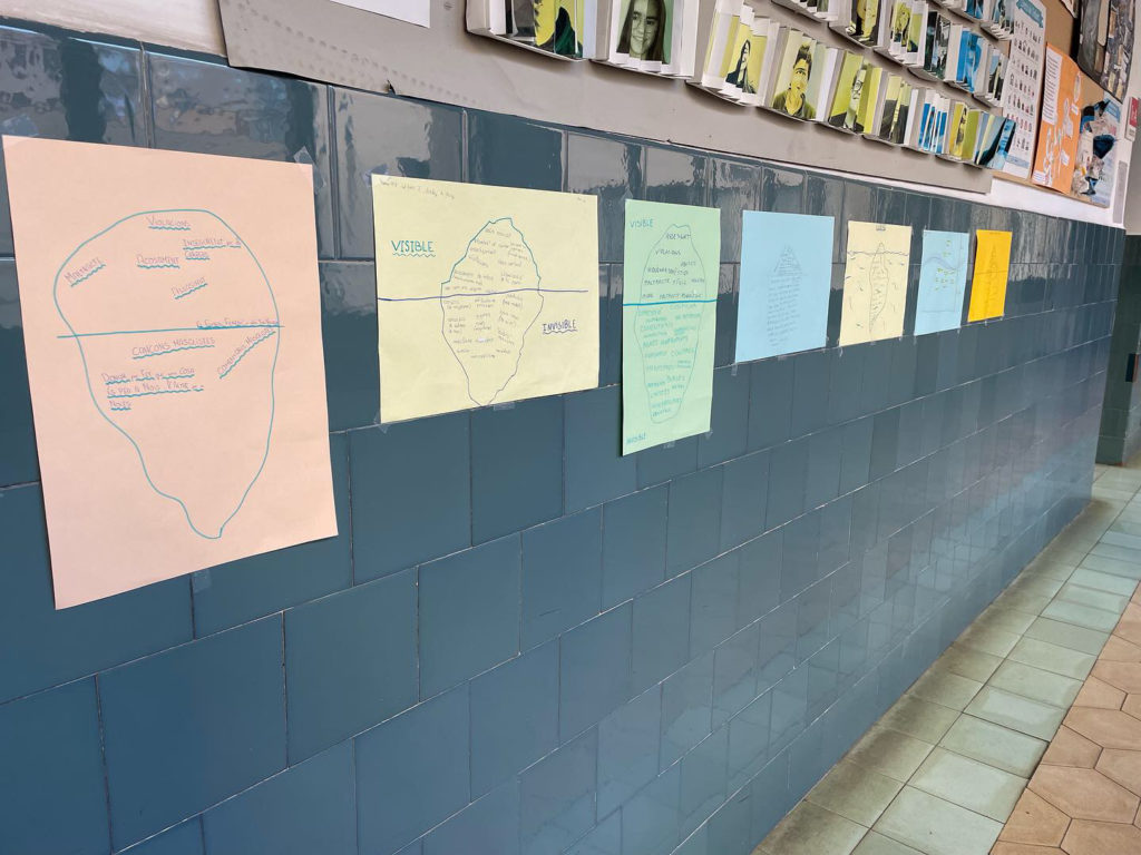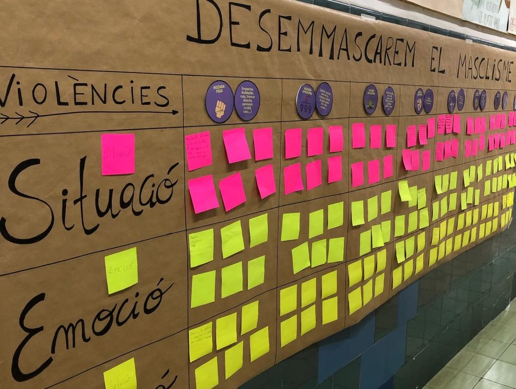 L’activitat es va dur a terme durant la matèria de Tutoria i va consistir a crear un iceberg amb les violències masclistes visibles i no visibles a través d’una activitat prèvia on es van comparar imatges dels rols estereotipats de la dona. Tot aquest treball va desembocar en diferents debats molt enriquidors on l’alumnat va compartir les seves opinions i experiències vers aquest fet.