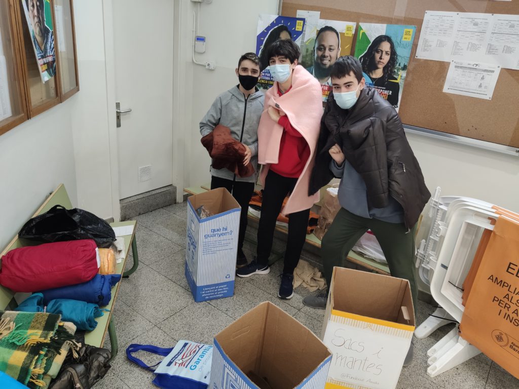 Des de la matèria APSC (Aprenentatge i Servei Comunitari), han estat treballant en una campanya de comunicació interna per tal de conscienciar als companys i companyes del centre de la problemàtica del sensellarisme. Una de les accions va ser la recollida de roba de llit per fer front a l’hivern.