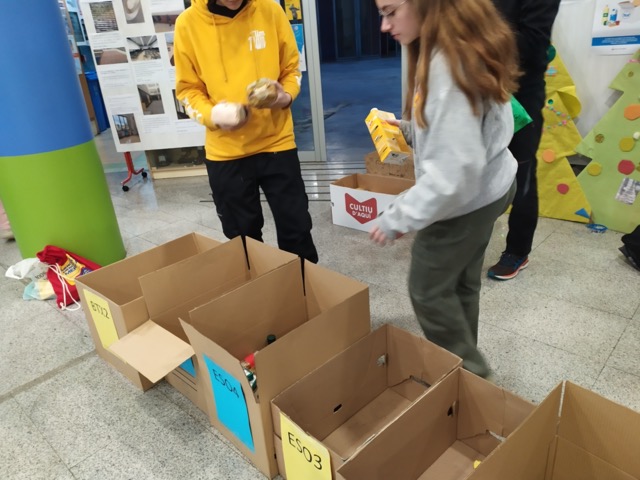En l’entitat d’Arrels, els alumnes van treballar en la sensibilització de les persones que dormen al carrer. Van estar recollint sacs, motxilles, roba d’abric… per a ajudar a persones sense llar.