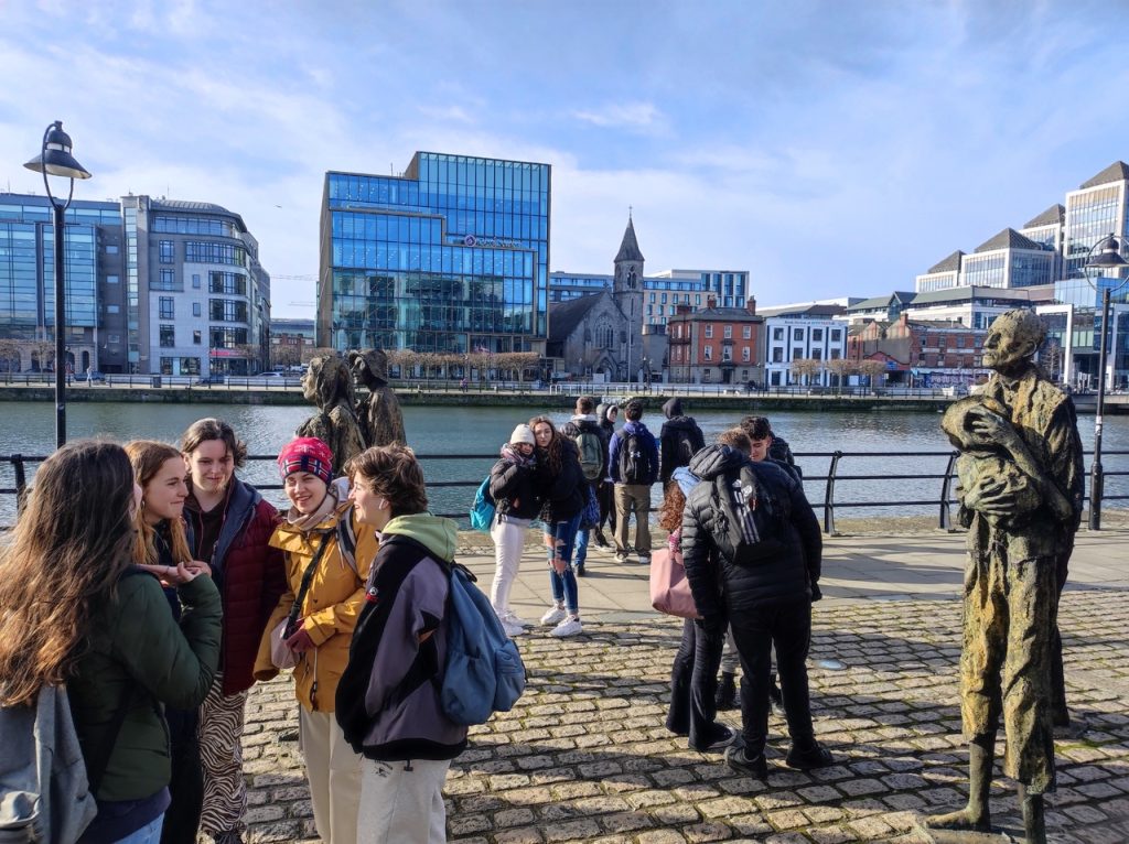 A part de millorar la llengua hem tingut experiències molt enriquidores. Hem anat en bicicleta per Phoenix Park amb els seus característics cèrvols; hem passejat pel port de Howth, on hem tingut la salutació de les foques; hem visitat la biblioteca de Trinity College i l’increïble Book of Kells i hem passejat pels seus jardins i aules; hem après sobre la conflictiva història d’Irlanda a Dublin Castle i Malahide Castle; ens hem quedat bocabadats a la National Gallery i davant les dues majestuoses catedrals de Dublín; hem passejat pels molls fins l’emblemàtic Famine Monument; ens hem fotografiat amb Oscar Wilde i hem visitat el famós Temple Bar.
