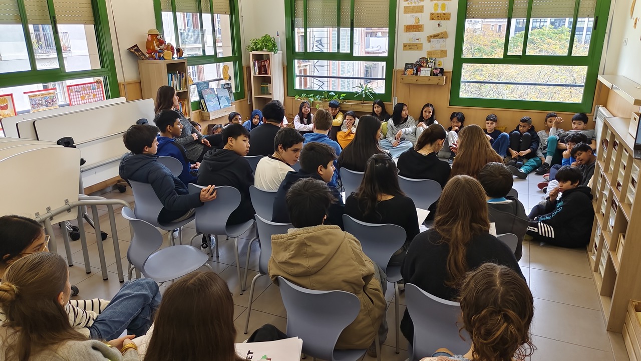 [vc_row css_animation="" row_type="row" use_row_as_full_screen_section="no" type="full_width" angled_section="no" text_align="left" background_image_as_pattern="without_pattern"][vc_column][vc_column_text] [/vc_column_text][vc_empty_space][/vc_column][/vc_row][vc_row css_animation="" row_type="row" use_row_as_full_screen_section="no" type="full_width" angled_section="no" text_align="left" background_image_as_pattern="without_pattern"][vc_column width="1/2"][vc_column_text]Dimarts 5 de març l’alumnat de 2n ESO grups A i C d’anglès va anar a explicar els contes que havien creat a l’alumnat de 3r i 4t de primària...