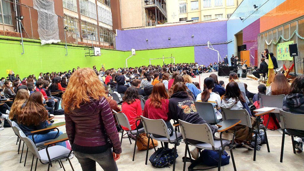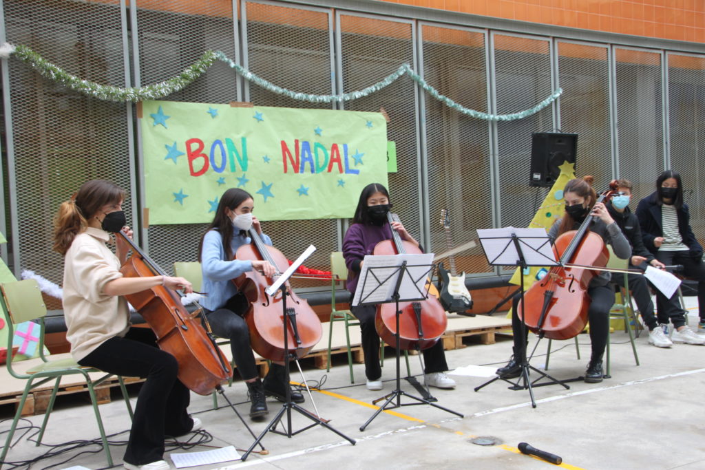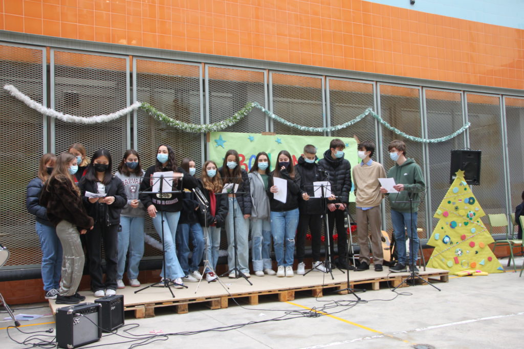 El darrer dia abans de les vacances de Nadal sempre és especial: algunes classes a primera hora, amic invisible i… el tradicional concert de Nadal! Aquest ha tingut lloc al pati en dos torns, primer, l’alumnat de 3r d’ESO i més grans, i després, 1r i 2n d’ESO.