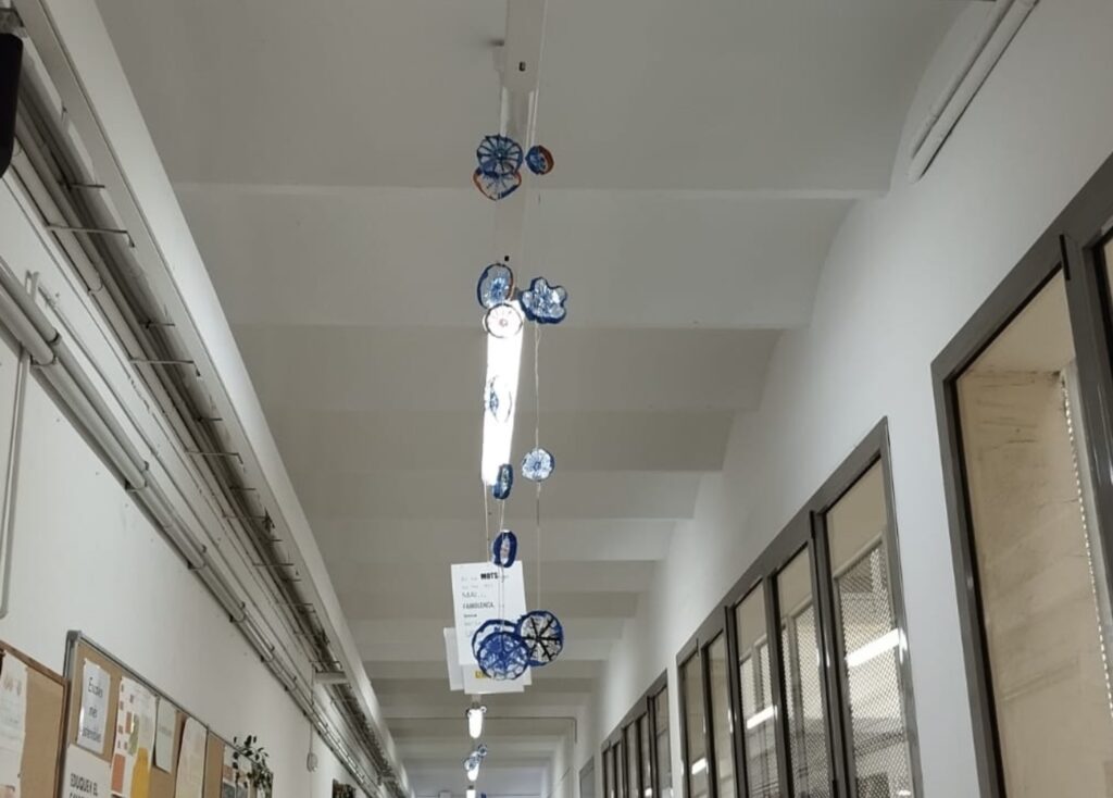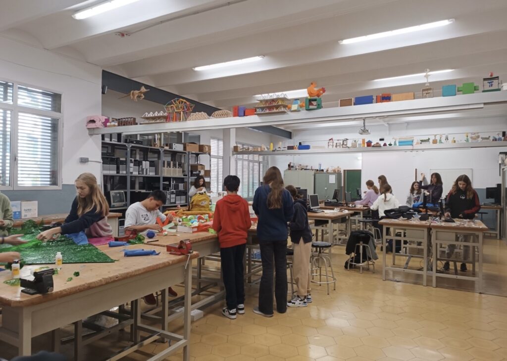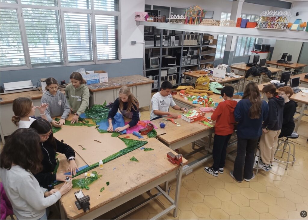 La comissió verda de l’institut ha organitzat tres trobades d’alumnat voluntari a l’hora de pati per crear una decoració de Nadal amb material reciclat com diaris i fulls de publicitat. Les trobades s’han fet al taller de tecnologia.