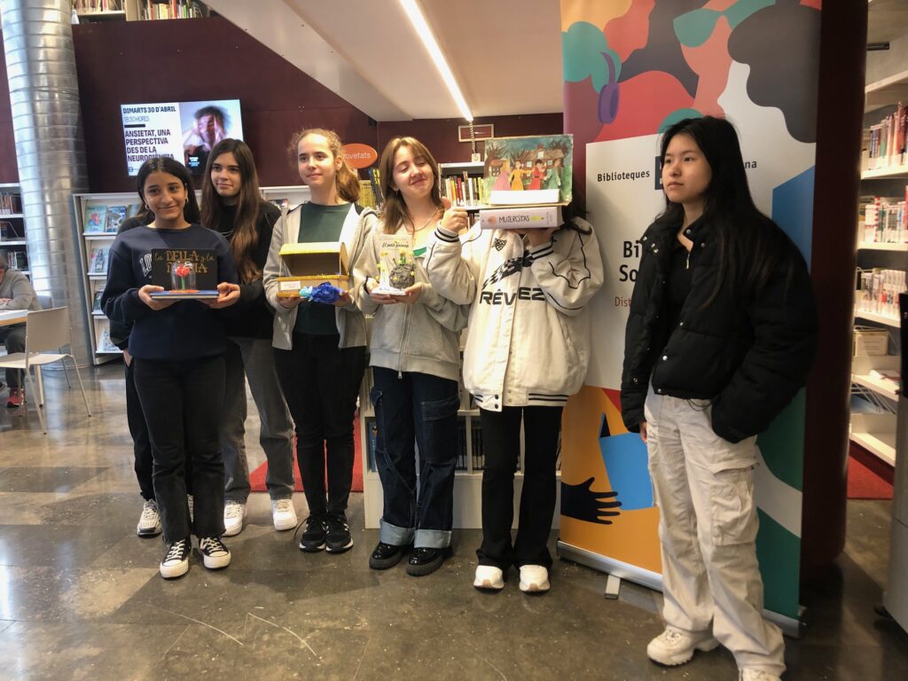 Durant el mes de febrer l’alumnat de 2n d’ESO ha elaborat les seves creacions i, amb la col·laboració de l’AFA, se n’han seleccionat 4 per representar-nos a l’exposició que es farà a la biblioteca de manera conjunta amb les escoles i instituts veïns. El passat divendres 15 de març vam anar amb les autores a portar les obres. Si voleu visitar la mostra, la trobareu al c/ Girona 64-68 (interior d’illa).