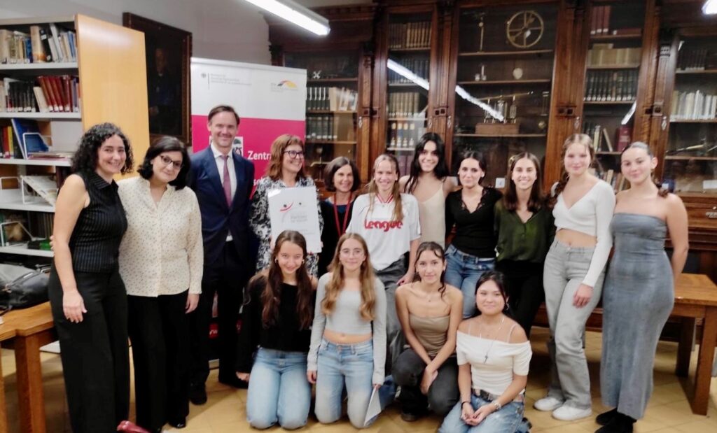 El segon motiu de l’acte va ser l’entrega de la placa de PASCH-Schule, ja que ens hem incorporat a la xarxa de les escoles PASCH. Aquesta connexió permet formar part de la xarxa global d’Escoles per a la Promoció Activa de la Llengua Alemanya i descobrir i connectar amb altres cultures de parla alemanya a tot el món, enriquint així la vostra formació i visió global.
