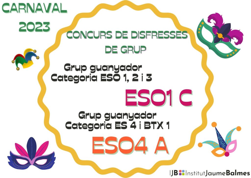 El dia 16 de febrer vam celebrar Carnestoltes. L’alumnat va disfressar-se i també va disfressar l’aula. A continuació us deixem algunes imatges de l’alumnat de l’ESO, així com el cartell dels guanyadors del concurs: