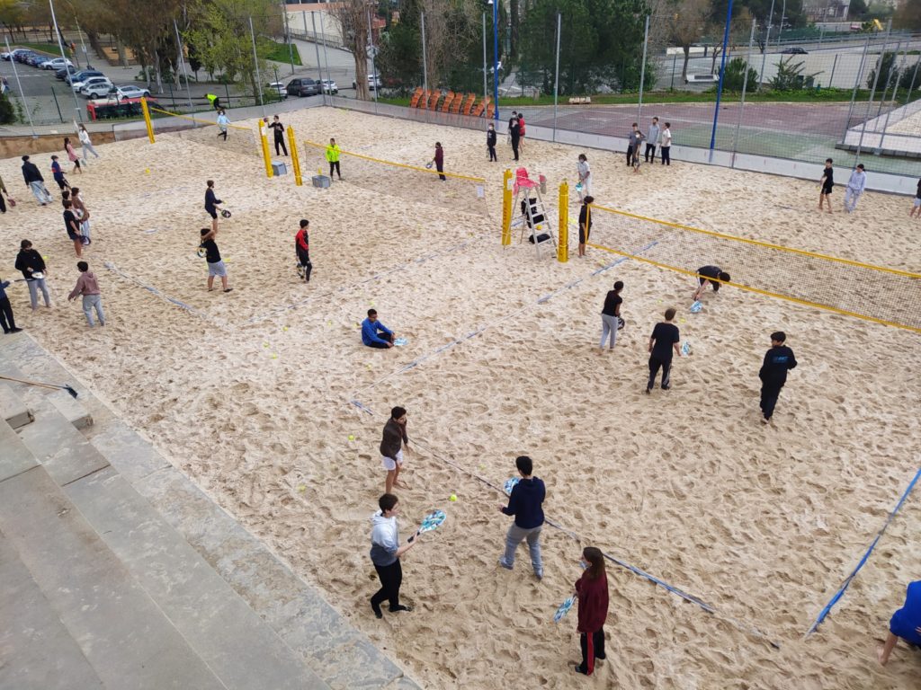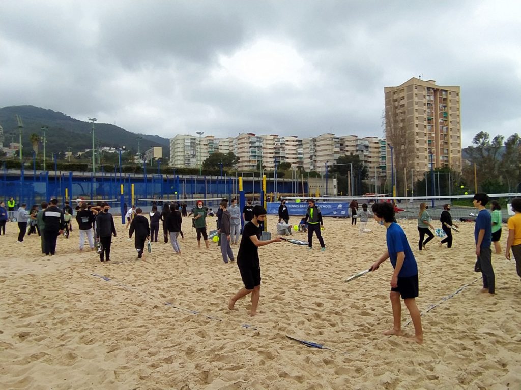 Per concloure la unitat didàctica, dilluns 21 de març, vam participar en una jornada de “Tennis Platja” organitzada per l’Institut Barcelona Esports i l’Ajuntament de Barcelona al CEM de la Vall d’Hebrón.
