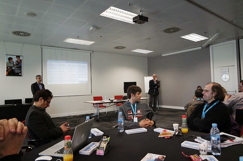 Mentrestant, els 60 professors, representants de la direcció d’HP, de la Facultat d’Informàtica de Barcelona i del Departament d’Ensenyament, ens vam reunir en una sala adjunta per discutir i fer propostes de com potenciar i introduir la programació durant tota l’etapa educativa dels estudiants, ja que s’ha demostrat que és una eina molt bona per desenvolupar moltes habilitats imprescindibles avui en dia.