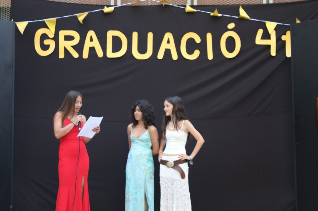 El passat 19 de juny, va tenir lloc la festa de la Graduació de 4t d’ESO. Aquesta festa també va comptar amb discursos, actuacions i molt bon ambient. A més, la característica més rellevant d’aquesta festa és que és l’alumnat qui s’encarrega de lesorganització de la mateixa, amb l’ajuda dels tutors, tutores i coordinació.
