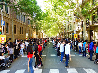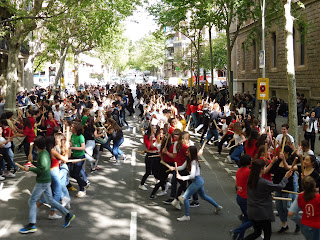 • el Ball de Bastons que aquests l’hem fet el dimecres 24 d’abril (l’endemà de Sant Jordi) al carrer Bruc, entre els carrers València i Aragó, conjuntament amb l’alumnat de 6è de l’escola Concepció.