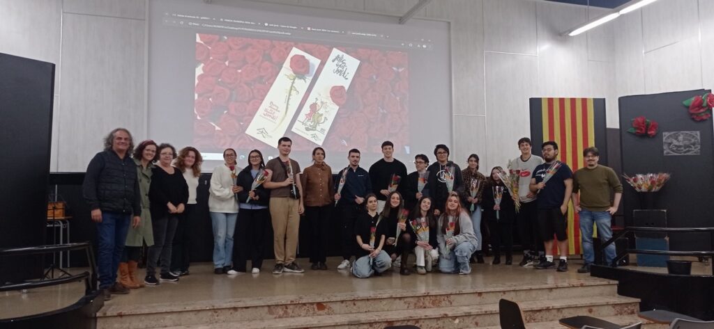 El passat 23 d’abril, coincidint amb la Diada de Sant Jordi, es va fer el lliurament dels premis dels concursos convocats pels diferents departaments didàctics de l’institut: català, castellà, anglès, francès, alemany, filosofia i disseny gràfic (disseny de l’agenda del curs 2024-2025).