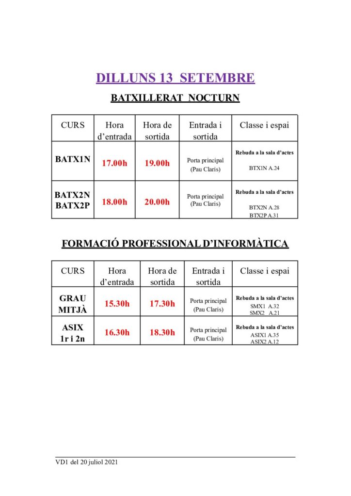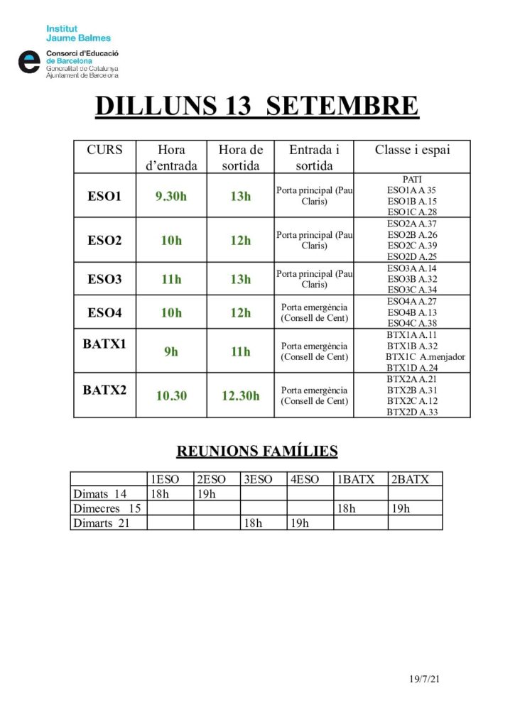 Hem enviat a les famílies de l’alumnat d’ESO i Batxillerat diürn un correu amb les informacions d’inici del curs 2021-2022.