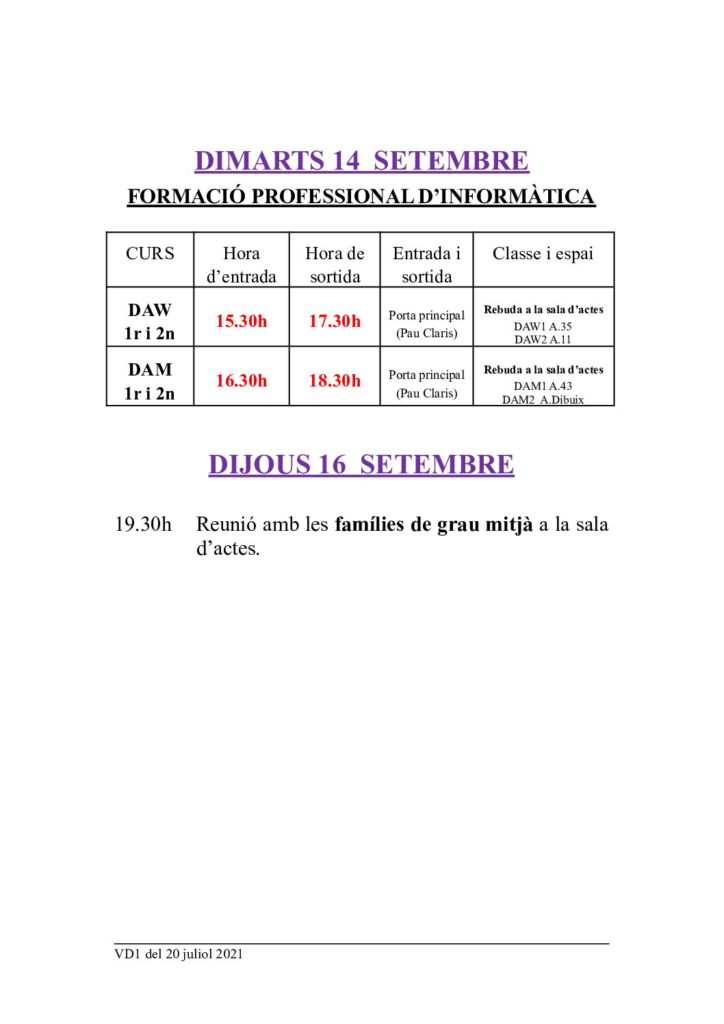 Informació d’Inici de Curs 2021-2022