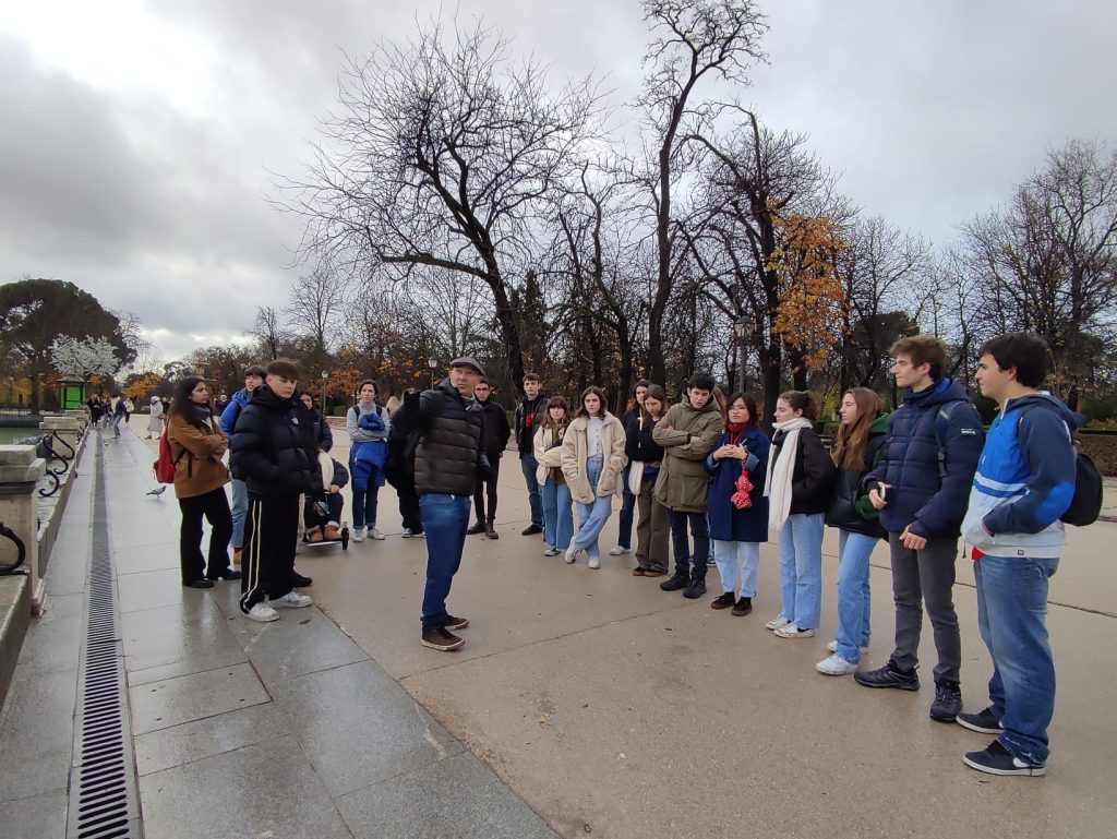 Al Retiro, vam veure l’Àngel caigut, el Palau de Vidre, l’estanc d’Alfons XII… Sortirem per la Porta d’Alcalà i visitarem el barri de Salamanca, la Plaça de Colom, el Passeig de la Castellana i el Passeig del Prado. També visitarem el Museu del Prado.