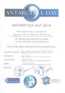Com a centre hem rebut un certificat conforme les banderes dissenyades pels alumnes han arribat a la base científica francesa Durmont d’Urville. Així mateix els alumnes han rebut un certificat individual.