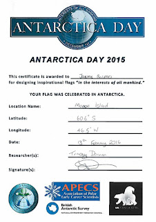 Ja tenim el certificat i una foto conforme les nostres banderes van arribar fins a Monoe Island a 60º S i 46ºW.