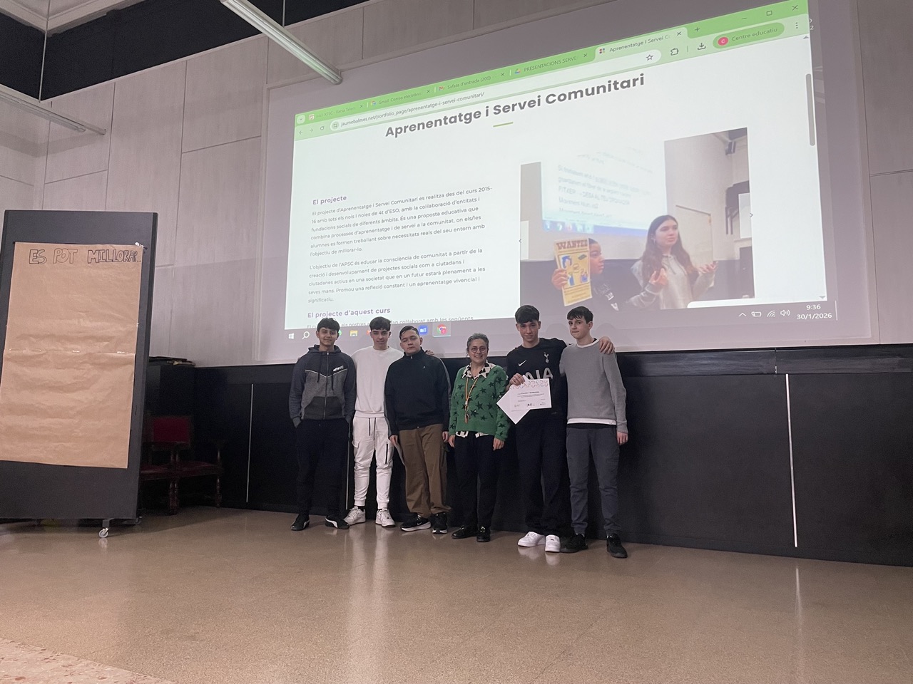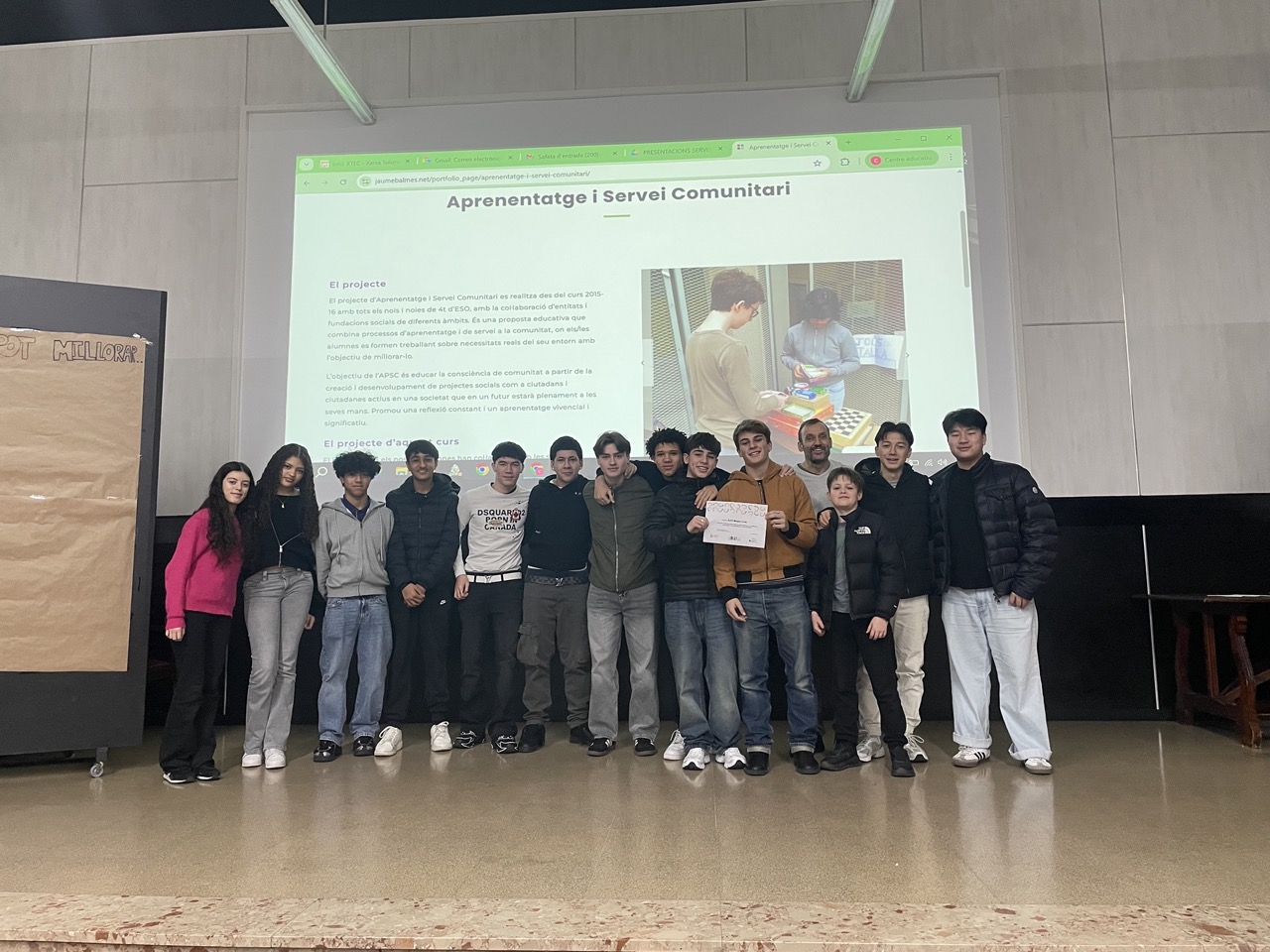 El projecte d’Aprenentatge i Servei Comunitari es realitza des del curs 2015-16 amb tots els nois i noies de 4t d’ESO, amb la col·laboració d’entitats i fundacions socials de diferents àmbits.