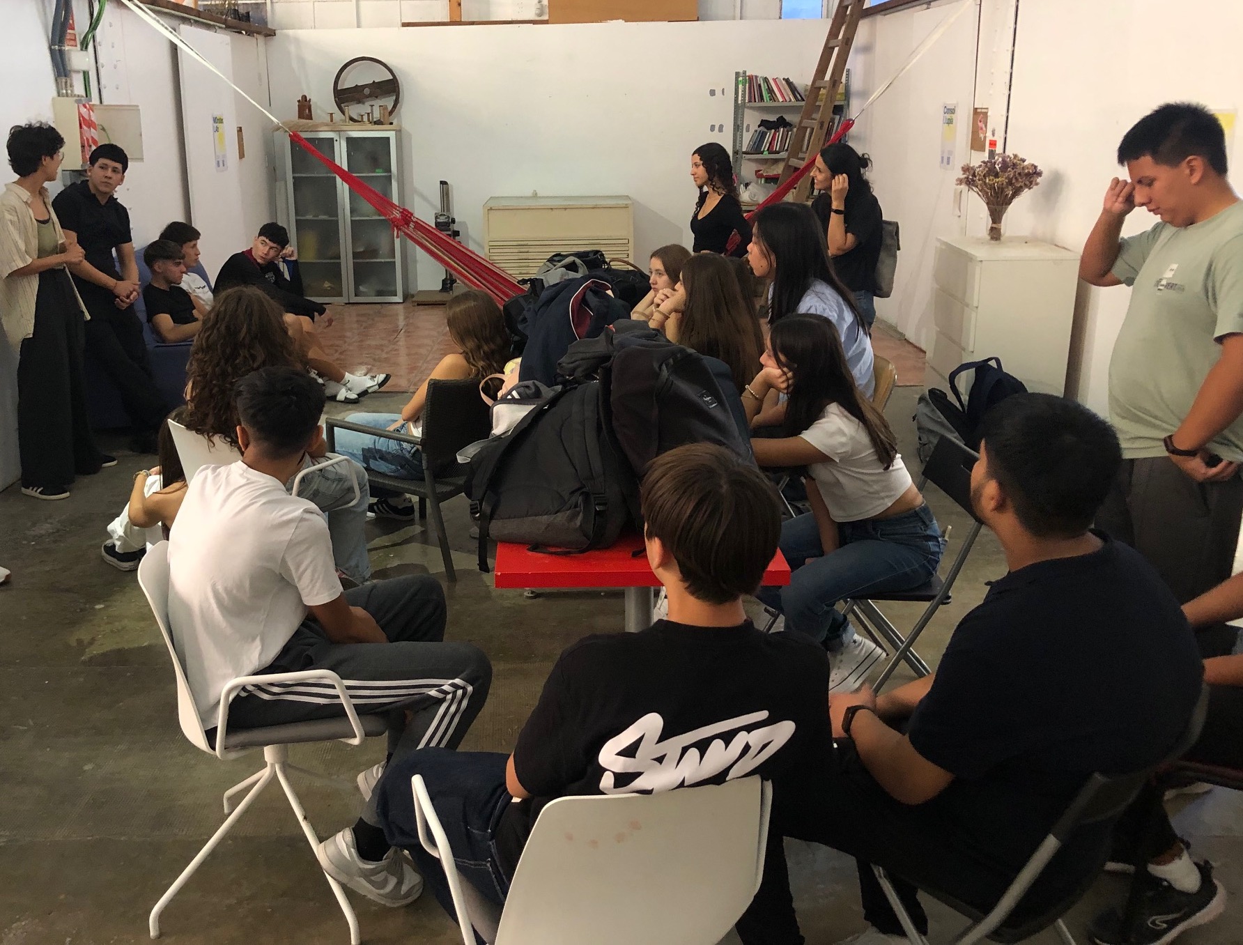 Estan acompanyats per les docents Eva Mateo i Ana García així com la mediadora Francesca Dinuzzi d’Experimentem amb l’Art (EART). L’artista resident d’enguany és la Paula Vicente. Podeu consultar una breu biografia aquí