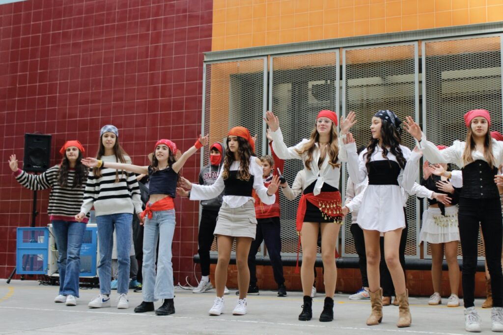 La festa va tenir diferents fases. D’11 a 1, l’alumnat va guarnir les portes de les seves aules, es va disfressar i va acabar d’enllestir la coreografia. A la 1, va començar l’exhibició de disfresses i coreografies al pati gran.