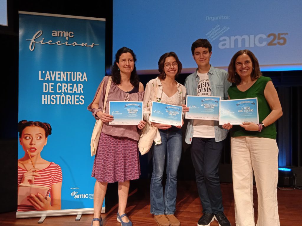 Enguany tenim una gran notícia: tres alumnes han quedat, entre gairebé 4.500 participants, finalistes: Alexandra Riera, Carla Tarrida i Joana Koberg, de 1r de batxillerat. Amb l’enorme participació d’aquesta edició, només arribar a la final ja té un gran mèrit. A més, l’alumne Joan Portals Bonich, de 2n de batxillerat, ha guanyat molt merescudament el 2n Premi Especial de la Ciutat de Barcelona; i, amb un relat espectacular, l’alumna Jana Cuch Guillén, de 2n de batxillerat, ha guanyat el 1r Premi Amic-Ficcions i el Premi a la Millor Història Catalunya. Podeu llegir la seva història en aquest enllaç: “La vida que no vaig viure”.