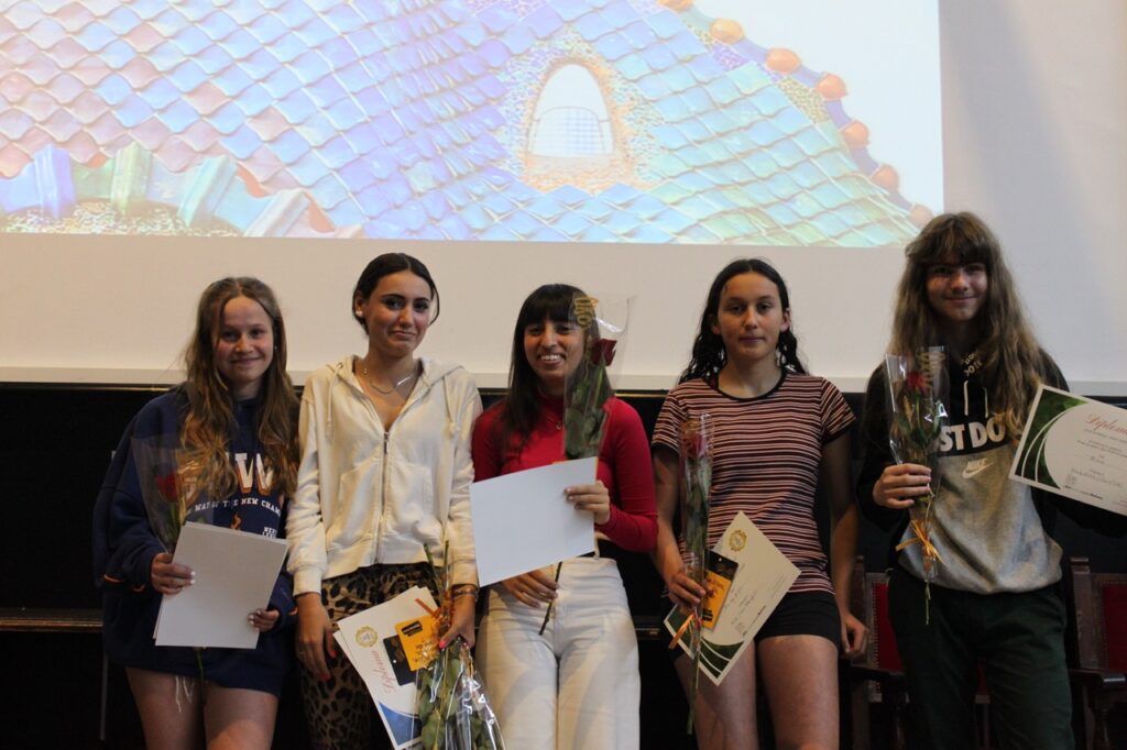 A continuació us deixem la relació d’alumnat guardonat als diferents concursos de Sant Jordi 2023. A més, també es van lliurar els premis del Divendres a l’Esprint i els diplomes de les proves Cangur. Més endavant, es publicarà un recull amb totes les obres guanyadores per a que pugueu gaudir-ne de la lectura.