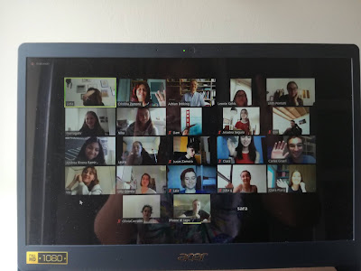 - Tasca 3: investigar en la pròpia ciutat Barcelona i observar com ha canviat i quines estratègies s’han creat arran de la crisi (xarxes de solidaritat, ajuda entre veïns, iniciatives institucionals …).Escriure un article / redacció en alemany i pujar-lo a la carpeta drive i compartir en un Padlet. L’objectiu d’aquesta tasca és reunir informació per escriure un breu text en alemany i establir les bases per a realitzar un debat per videoconferència amb els alumnes alemanys, en el qual vam compartir impressions i experiències el passat 19 de juny. Durant la videoconferència els alumnes van parlar sobre el confinament en les seves respectives ciutats, sobre els seus sentiments davant de la pandèmia, en un Padlet van penjar fotografies de l’estada a Barcelona, de les seves creacions sobre la COVID-19 i finalment un acròstic bilingüe.