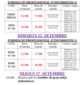 Reunió amb les famílies del grau mig d’informàtica (SMX)