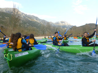 Dijous vam posar-nos els neoprens i, com si fóssim uns autèntics vogadors, vam fer el descens del riu Sella (8km) tot esquitxant-nos, rient i fent braços. Alguns de nosaltres ens hi vam implicar tant que fins i tot vam caure a l’aigua! Quina sort vam tenir que fes solet! A la tarda vam pujar (i baixar, ja que sinó encara estaríem allà!) en telefèric als Picos de Europa i alguns fins i tot vam lliscar com pingüins per la neu!! L’última nit vam fer un concurs de ball i exhausts però feliços ja vam començar a fer les maletes per marxar.