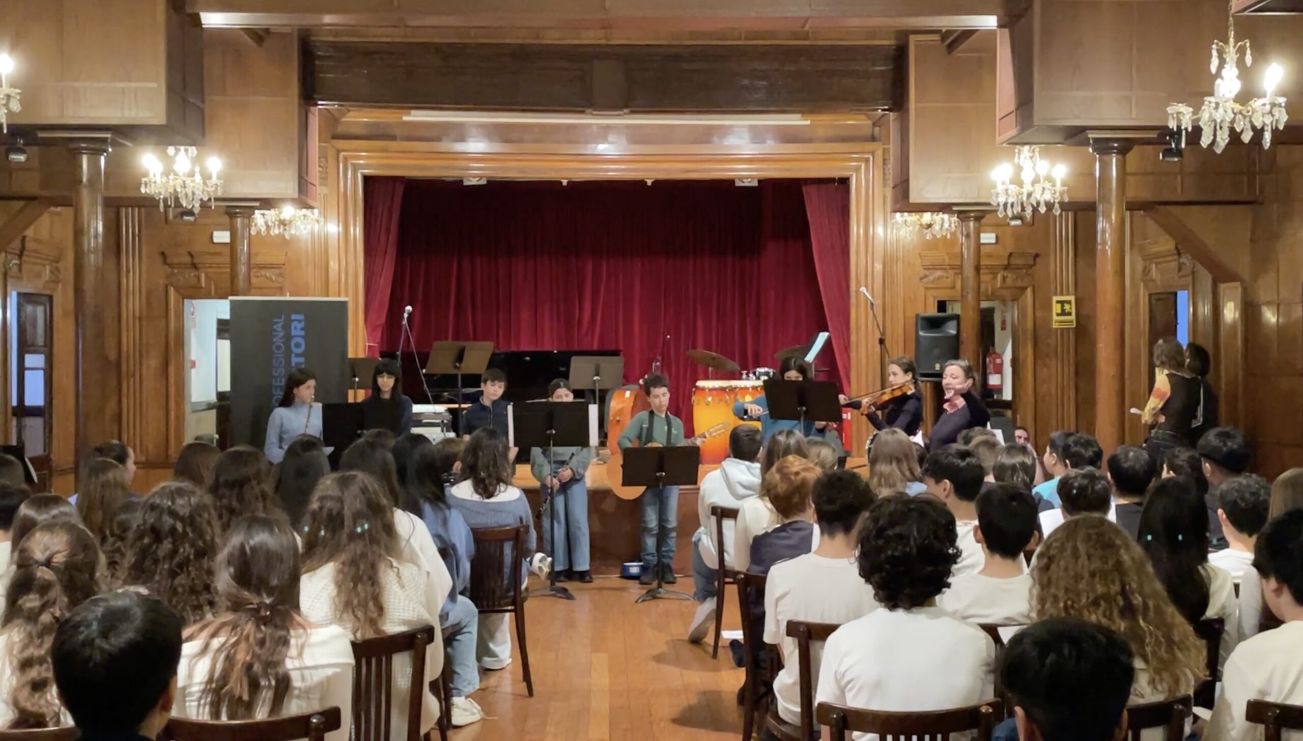 [vc_row css_animation="" row_type="row" use_row_as_full_screen_section="no" type="full_width" angled_section="no" text_align="left" background_image_as_pattern="without_pattern"][vc_column][vc_column_text] [/vc_column_text][vc_empty_space][/vc_column][/vc_row][vc_row css_animation="" row_type="row" use_row_as_full_screen_section="no" type="full_width" angled_section="no" text_align="left" background_image_as_pattern="without_pattern"][vc_column width="1/2"][vc_column_text]El passat dilluns 11 de març l'alumnat de 1r d'ESO va presentar al Teatrino del conservatori del Liceu el projecte “Cançons d'aquí i d’allà”, un concert a l'entorn de la música...