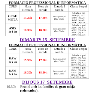 [vc_row css_animation="" row_type="row" use_row_as_full_screen_section="no" type="full_width" angled_section="no" text_align="left" background_image_as_pattern="without_pattern"][vc_column][vc_empty_space][vc_column_text]El proper dijous, 30 de setembre, a les 19:45, tindrà lloc de forma telemàtica la reunió informativa amb les famílies del Grau Mig d'Informàtica (SMX). Per connectar-nos, utilitzarem el següent enllaç: meet.google.com/otj-zfgt-ewx Us hi esperem![/vc_column_text][/vc_column][/vc_row][vc_row css_animation="" row_type="row" use_row_as_full_screen_section="no" type="full_width" angled_section="no" text_align="left"...