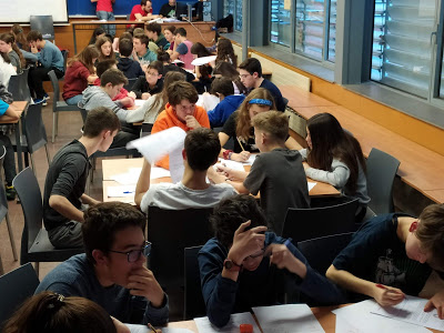 Ahir, dijous 30 de gener de 2020 a les quatre de la tarda un grup d’11 alumnes del centre de 2n i 3r d’ESO distribuïts en dos equips formats per 5 i 6 alumnes, va participar en la VII Copa Cangur. Una activitat matemàtica en la que es juga en equip i que consisteix en resoldre uns problemes de matemàtiques durant una hora.